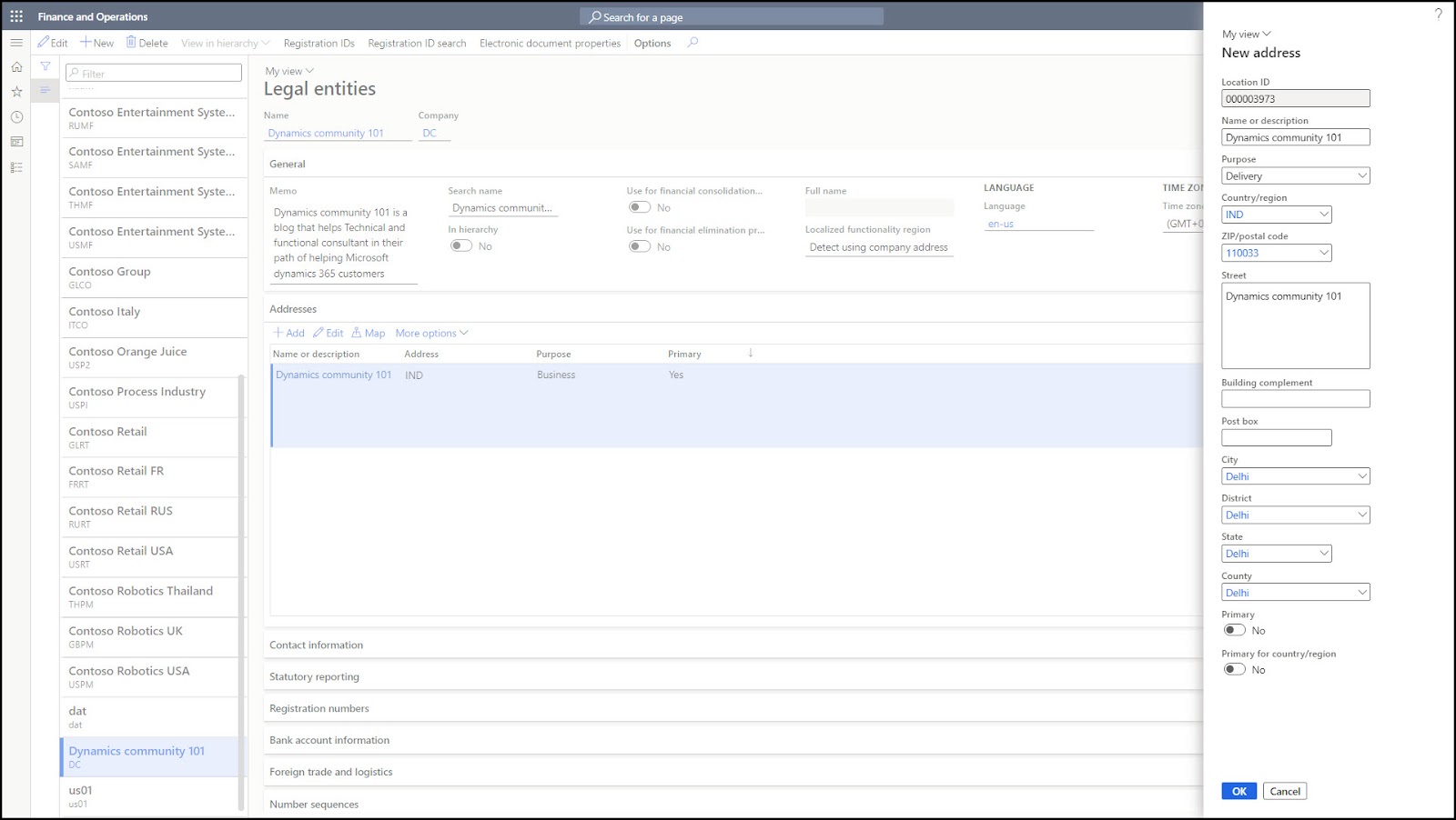 Once the legal entity is created, it will be opened automatically as shown in the below screenshot
